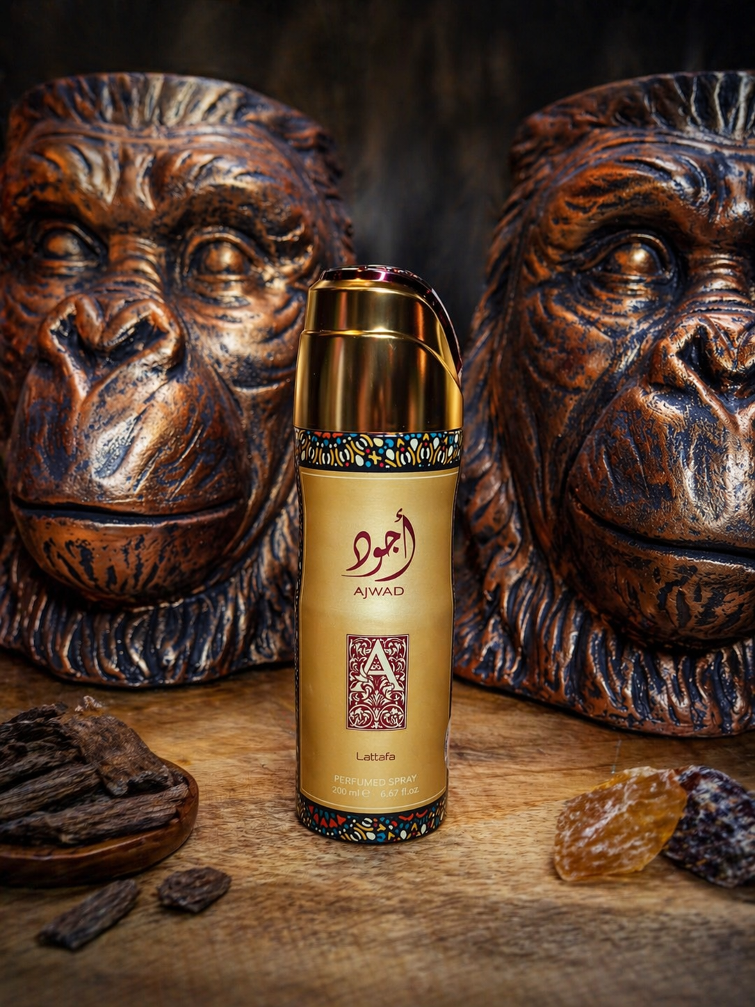 Ajwad van Lattafa Perfumes is een Houtachtig Aromatisch geur voor dames en heren. Ajwad werd uitgebracht in 2021. Topnoot is Fruitige Noten; hartnoten zijn Roos en Jasmijn; Basisnoten zijn Vanille, Muskus, Amber en Ceder.